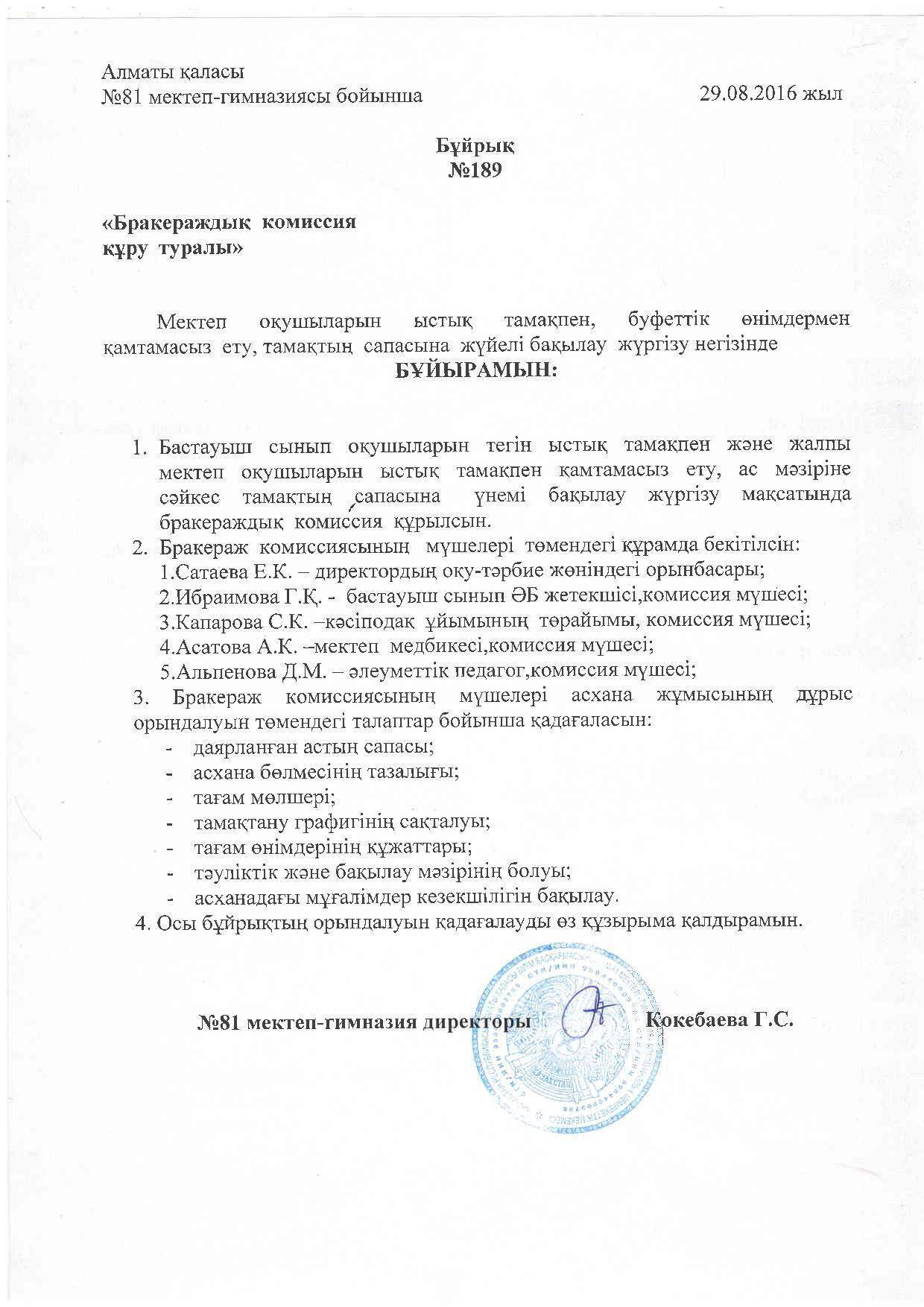 бұйрық №189