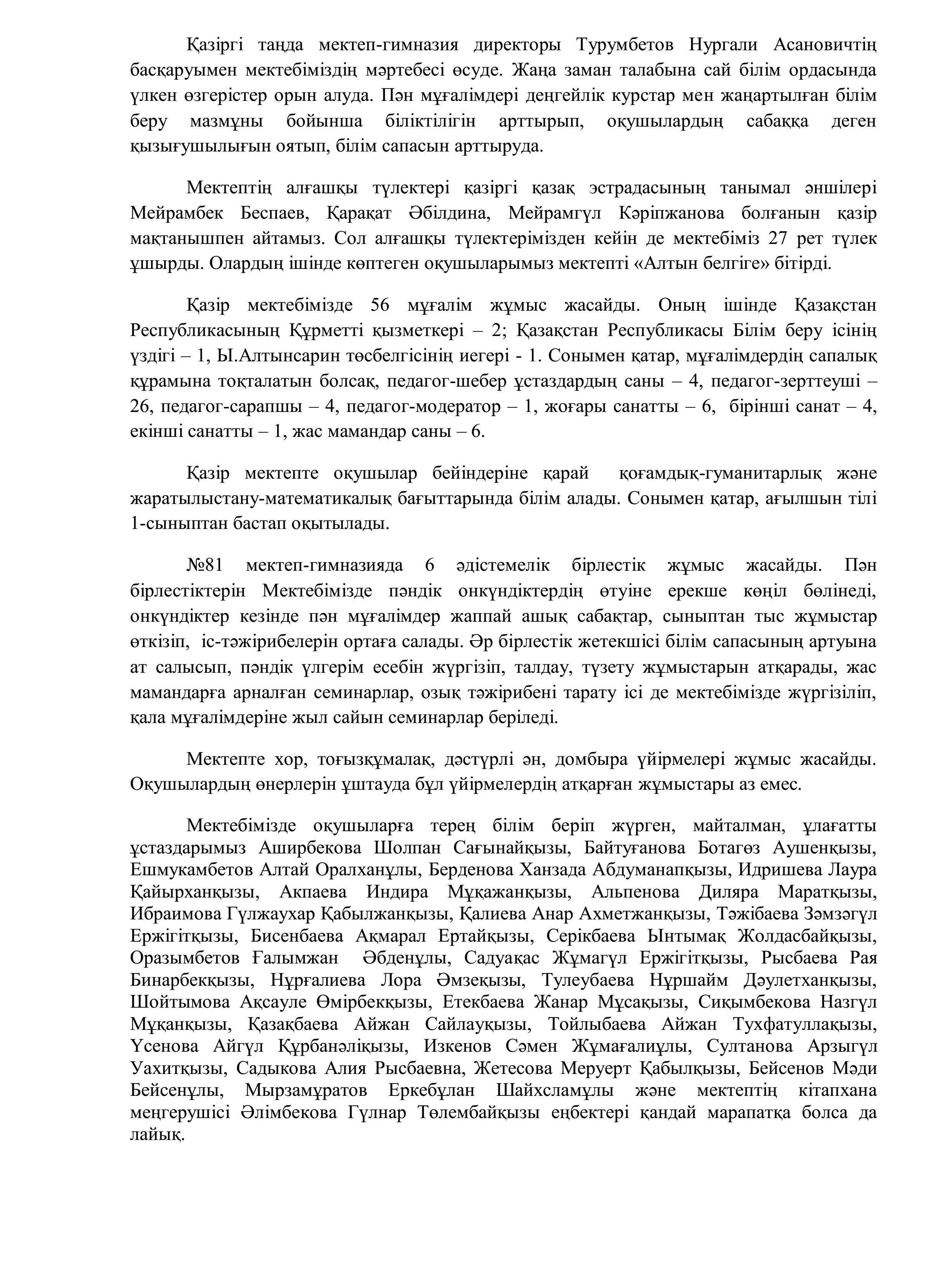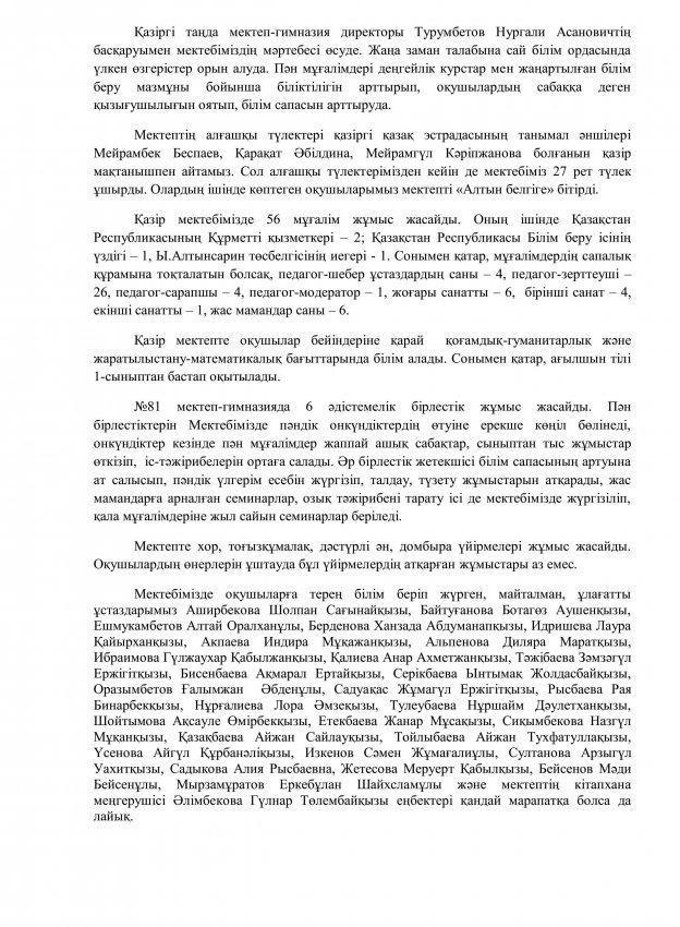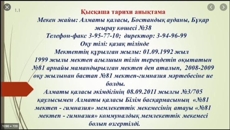 КГУ «Школа-гимназия №81» Управления образования города Алматы