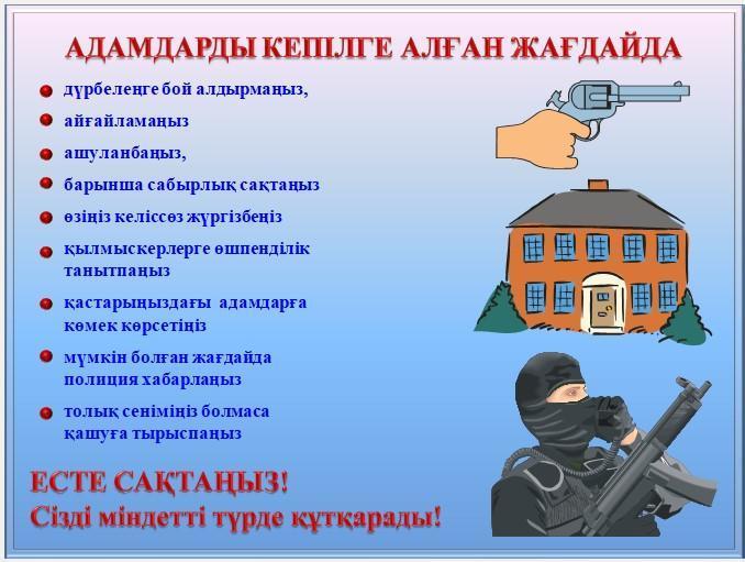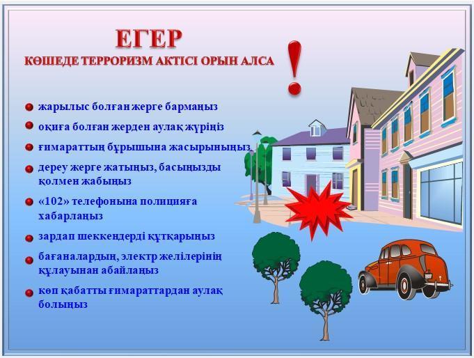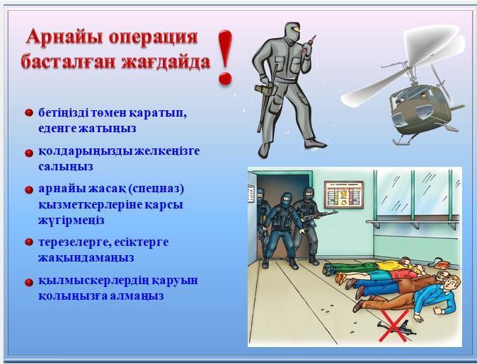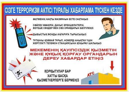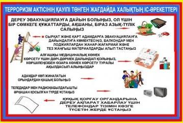 » » Терроризм актісінің қауіпі туынадаған немесе терроризм актісі жасалған жағдайдағы әрекеттер туралы ЖАДНАМА