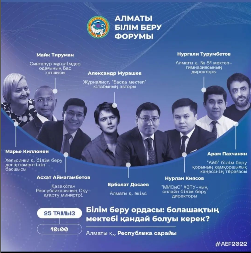25.08.2022 күні, сағат 10.00-де Республика сарайында өтетін АЛМАТЫ БІЛІМ БЕРУ ФОРУМЫНА зиялы тұлғалармен бірге мектебіміздің директоры Нурғали Асанұлы қатысады. Форумда басшымыздың қаладағы 207 мектептің ішінен топ жарып сөз сөйлеуі - мектебіміз үшін мәртебе. Сәттілік тілейміз!
