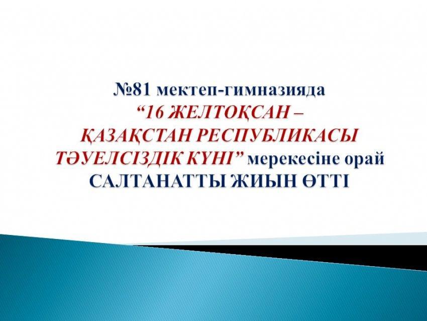 11 желтоқсан 2019 0 1 2 3 4 5 "16 ЖЕЛТОҚСАН-ТӘУЕЛСІЗДІК КҮНІ" МЕРЕКЕСІНЕ АРНАЛҒАН САЛТАНАТТЫ ЖИЫН Осы беттің QR-коды:QR-код этой страницы: