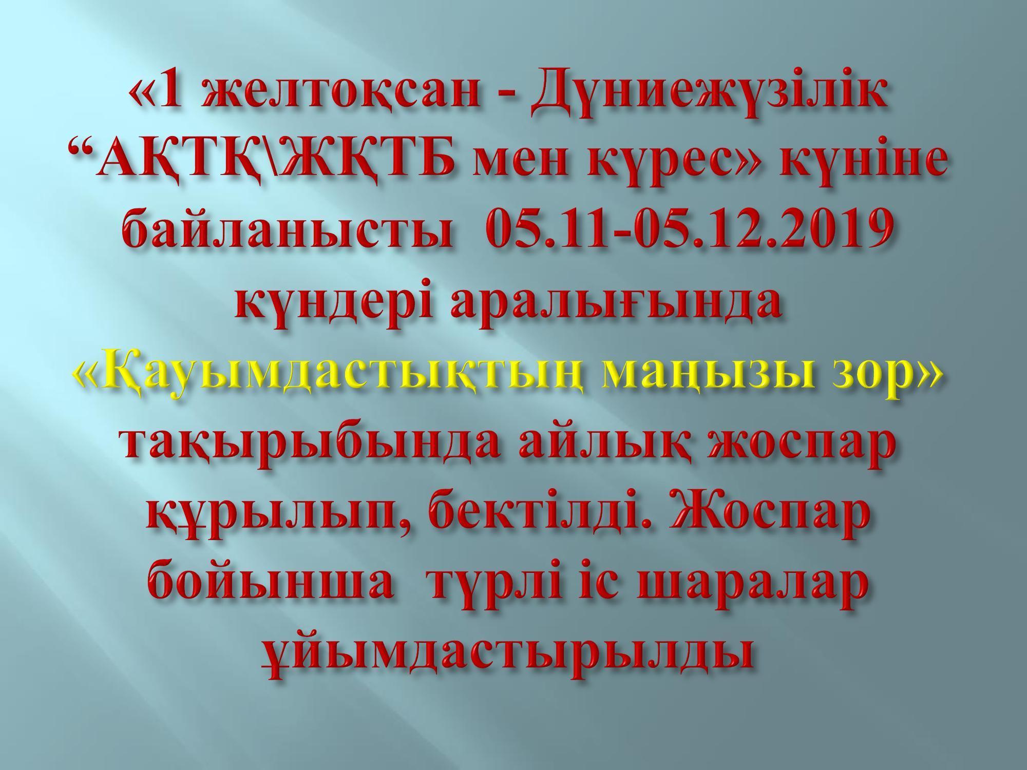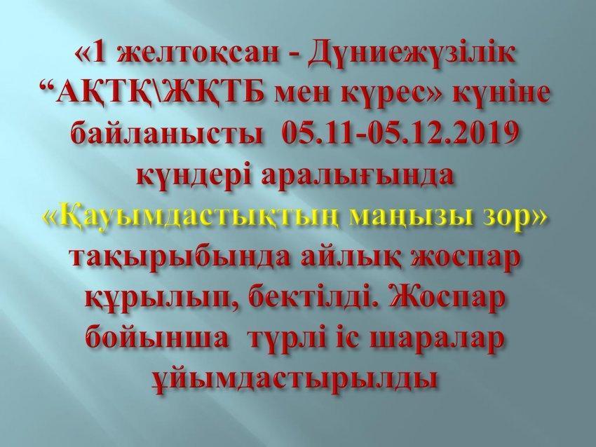 05 желтоқсан 2019 0 1 2 3 4 5 1 желтоқсан-Дүниежүзілік АҚТҚ\ЖҚТБ-мен күрес күні Осы беттің QR-коды:QR-код этой страницы: