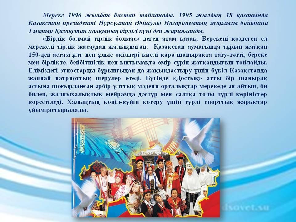 » » "1-Мамыр – Қазақстан халқының бірлігі” күніне байланысты қашықтық сабағы. 5 "Ә" сыныбы
