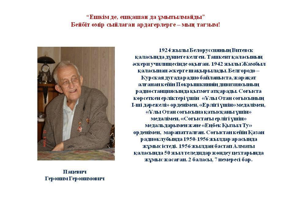 08 мамыр 2020 0 1 2 3 4 5 “Ешкім де, ешқашан да ұмытылмайды” Ардагерлерге – мың тағзым! Осы беттің QR-коды:QR-код этой страницы: