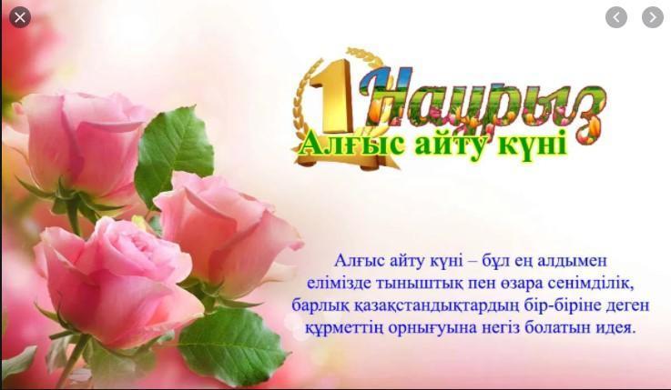 1 наурыз-Алғыс айту күніне байланысты 3 "Б" сыныбында "Алғыс айту-парызым" тақырыбында сынып сағаты өтті. Сынып жетекшісі: Калиева А Н.
