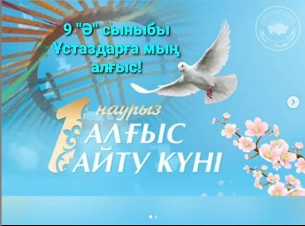 1 наурыз - Алғыс айту күніне арналған 9 "Ә" сынып оқушыларының ұстаздарға алғысы