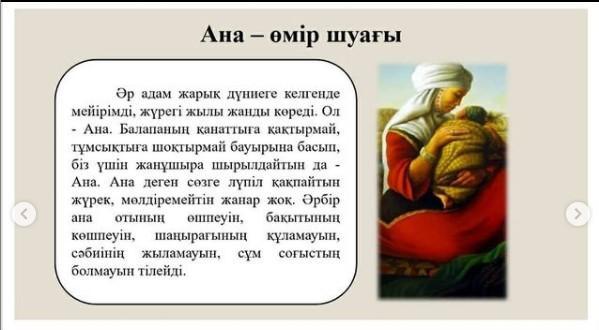 Оқушыларды ананың еңбегін ақтауға, анаға деген сүйіспеншілікке, ананы құрметтеп, сыйлауға тәрбиелеу