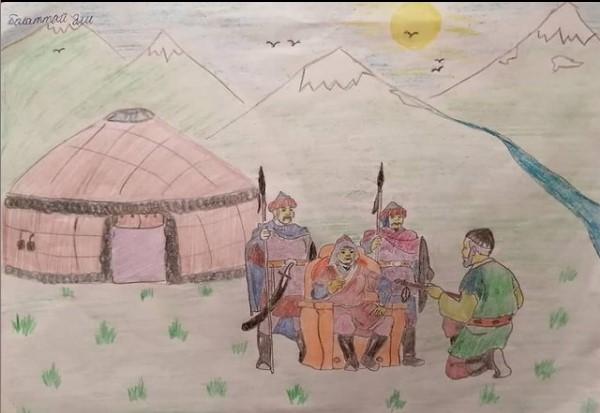 2 "Б" сынып оқушысы Болаттай Әлидің "Алдар көсе" кейіпкерлерін бейнелеуі. Сынып жетекшісі: Серикбаева Ы.Ж.