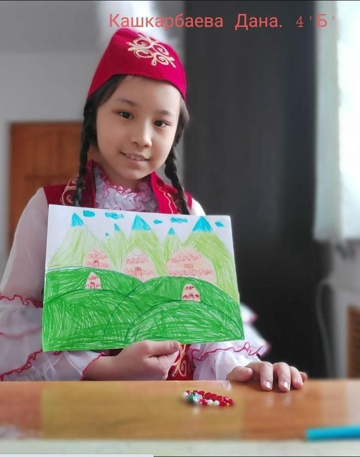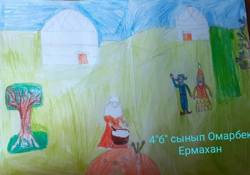 Рухани - адамгершілік тәрбиесі. Оқушылар көктемгі демалыс уақытында қазақтың ұлттық ертегі - жырлары мен әңгімелерін оқып, ұнаған кейіпкерлері мен ұнаған сюжеттерін қағаз бетіне түсіріп, суреттеді.