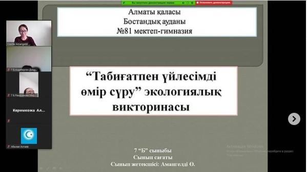 "ТАБИҒАТПЕН ҮЙЛЕСІМДІ ӨМІР СҮРУ" тақырыбында экологиялық викторинасы