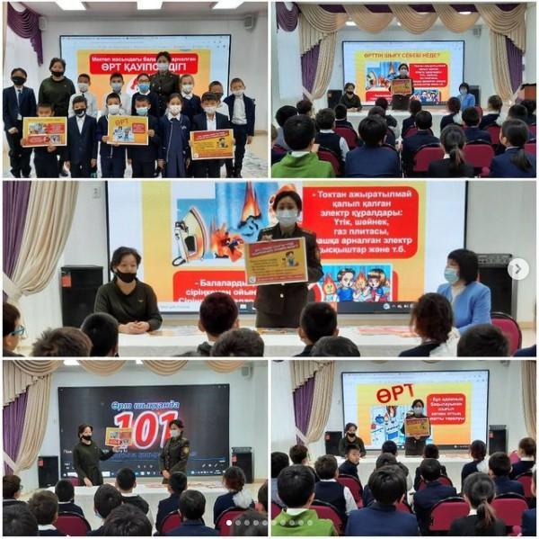 Өрт қауіпсіздігін алдын-алу мақсатында 4 "Б" сыныбында "Өрттің шығу себептері" тақырыбында ашық сынып сағаты өтті. Сынып сағатында Алматы қаласы Төтенше жағдайлар департаменті, төтенше жағдайларды жою басқармасының аға инженері, азаматтық қорғау капитаны Нұрымбетова Гулдана Маратқызы оқушылармен профилактикалық әңгіме жүргізді. Сынып сағатына директордың тәрбие ісі жөніндегі орынбасарлары Ж.С Жоламанова, А.К Усенова қатысты.