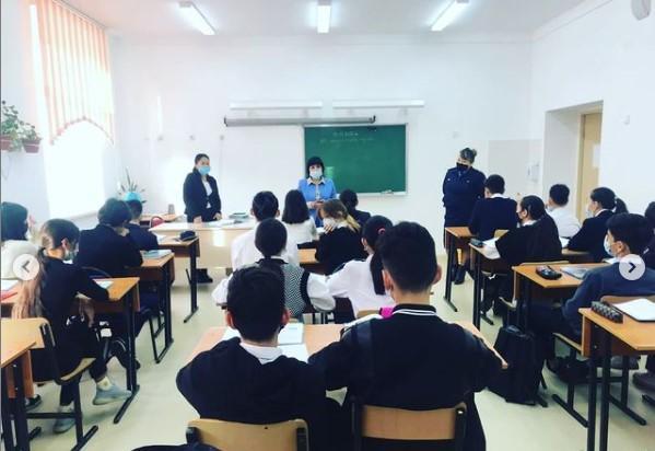 №81 мектеп-гимназиясы бойынша 19.10.2021 күні директордың тәрбие ісі жөніндегі орынбасарлары Ж. Жоламанова, А. Усенова, Бостандық АПБ ЮПБ ЖПҚБ полиция майоры Абишева Лаура Болатжановнаның қатысуымен 8 «А», 8 «Ә», 8 «Б» сынып оқушыларымен «Оқушылардың күзгі демалыс кезіндегі өмір қауіпсіздігі мен денсаулығын сақтау ережелері» тақырыбында нұсқаулық беріп, түсіндіру жұмыстарын жүргізді.
