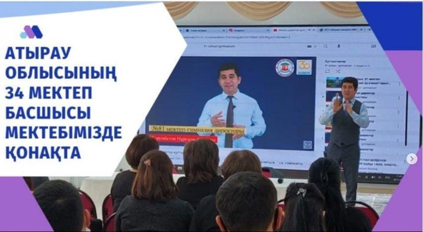 Атырау облысының 34 мектеп басшысы 18-қараша күні мектебімізді қонақта болып, жақсы тәжірибе алмасу болды. Мектебіміздің басшысы Нұрғали Асанұлы мектеп өмірінде болып жатқан жаңалықтар мен өзгерістер жайында таныстыра отырып, жетістіктерімізді атап кетті. Сонымен қатар келген қонақтар мектебіміздің оқу кабинеттерін аралап, жаңа жабдықтаулармен танысып, жақсы пікірлерін қалдырды.