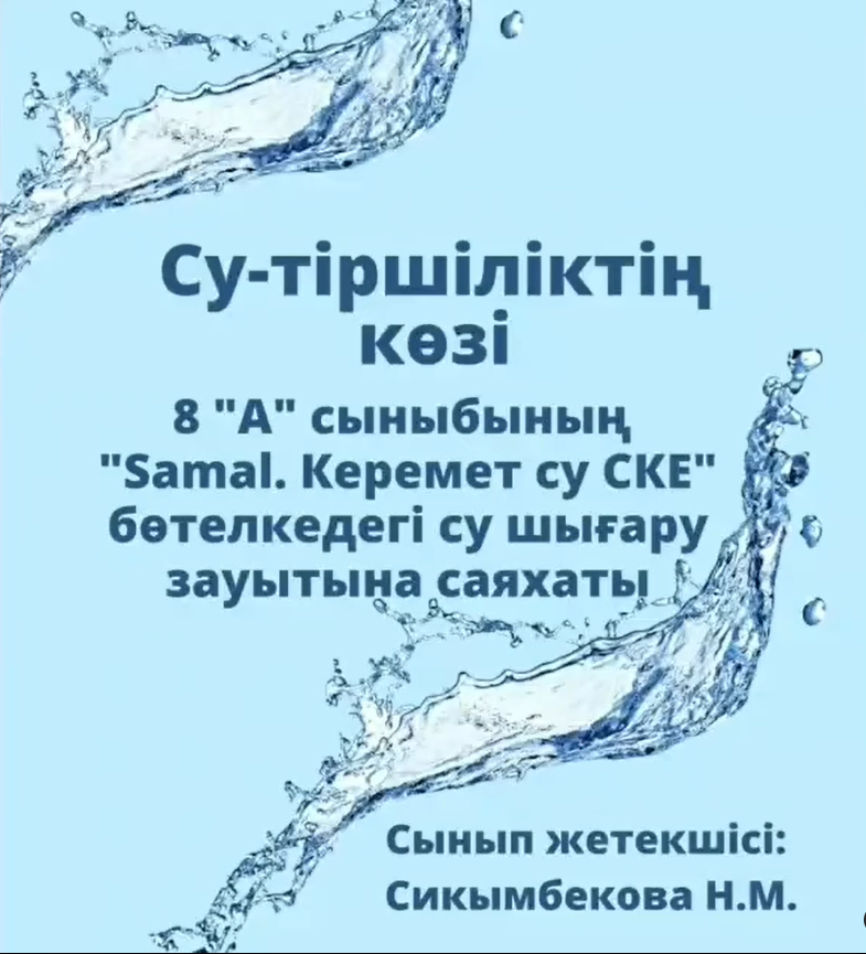 21.10.2022 күні 8 «А» сынып оқушылары «Samal. Керемет су СКЕ» бөтелкедегі су шығару зауытына саяхатқа барып қайтты. Ғылыми қызметкерлер оқушыларға «Самал» суының құбыр суынан қандай айырмашылығы бар екенін тәжірибе арқылы көрсетті. Содан кейін оқушыларға халат пен құлаққап киіп зауыт аумағына саяхаттауға ұсыныс жасалды. Балалар су алатын скважинаны, суды тазалау және фильтрлеу залын, суды бөтелкеге құю цехын, судың сапасын бақылау зертханасын көрді. Зауыт аумағында классикалық әуен ойнап тұрғаны ерекше әсер қалдырды. Экскурсия жүргізушісі әуен суды жағымды энергиямен қуаттандырады деп түсіндірді. Су адамға өте қажет¸ судың сапасы адамның және басқа тірі ағзалардың денсаулығы мен өмірінде маңызды рөл атқарады. «Керемет Су СКЕ» зауытында 2009 жылдан бері Samal суы өндіріледі. Оқушылар судың тазалығын зерттеп, оның бұлақтан қалай алынып, шараларға қалай өндірілетінін бақылап қайтты. Зауыттағы экскурсия соңында оқушыларға «Керемет су» компаниясы атынан сыйлық берілді. 8 «а» сынып жетекшісі Н.Сикымбекова экскурсияны ұйымдастырып, директордың тәрбие ісі жөніндегі орынбасары Ж.Жоламанова оқушылардың өмір қауіпсіздік ережесін сақтау мен денсаулығын бақылап бірге барып қайтты.