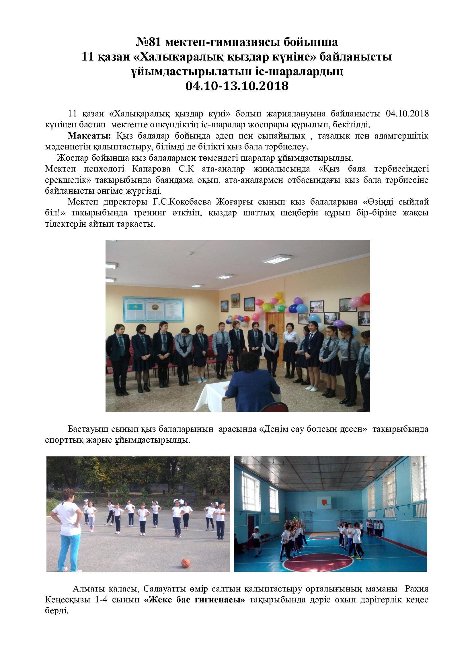 30 қаңтар 2019 0 1 2 3 4 5 "11 қазан - халықаралық қыздар" онкүндігі Осы беттің QR-коды:QR-код этой страницы:
