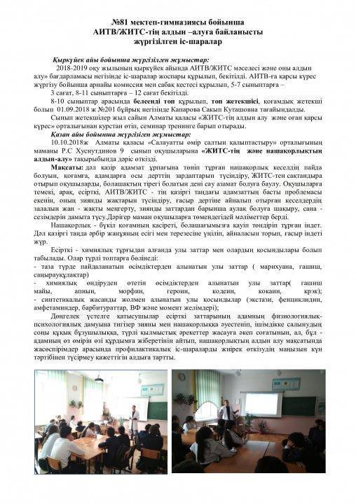 30 қаңтар 2019 0 1 2 3 4 5 АИТВ/ЖИТС-тің алдын алу бойынша іс шаралар Осы беттің QR-коды:QR-код этой страницы: