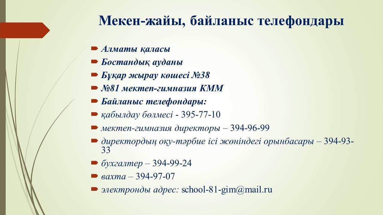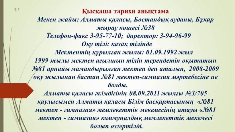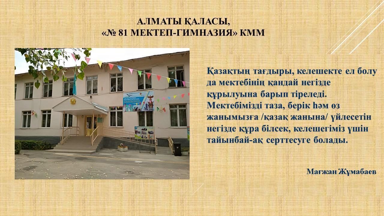 КГУ «Школа-гимназия №81» Управления образования города Алматы