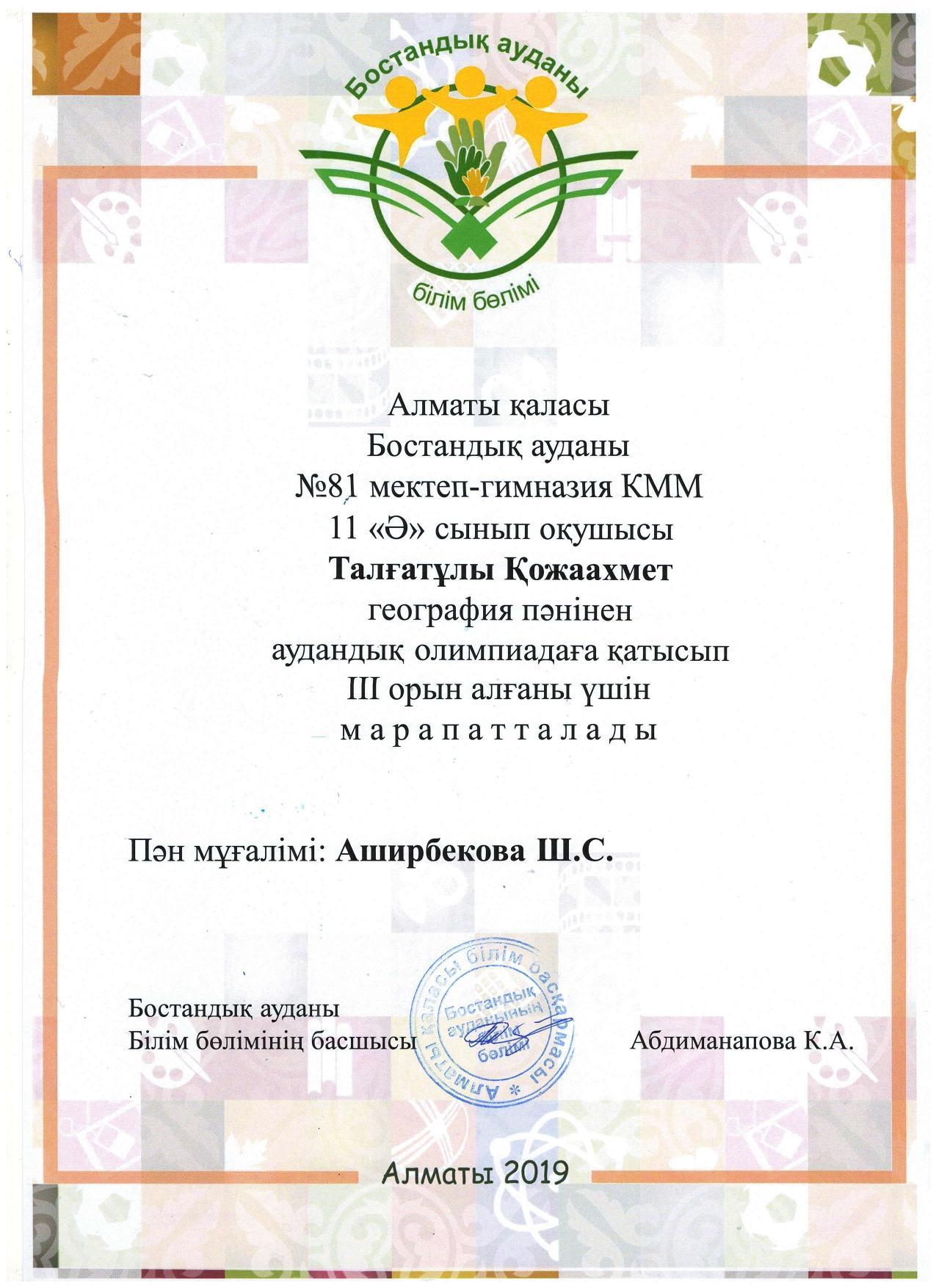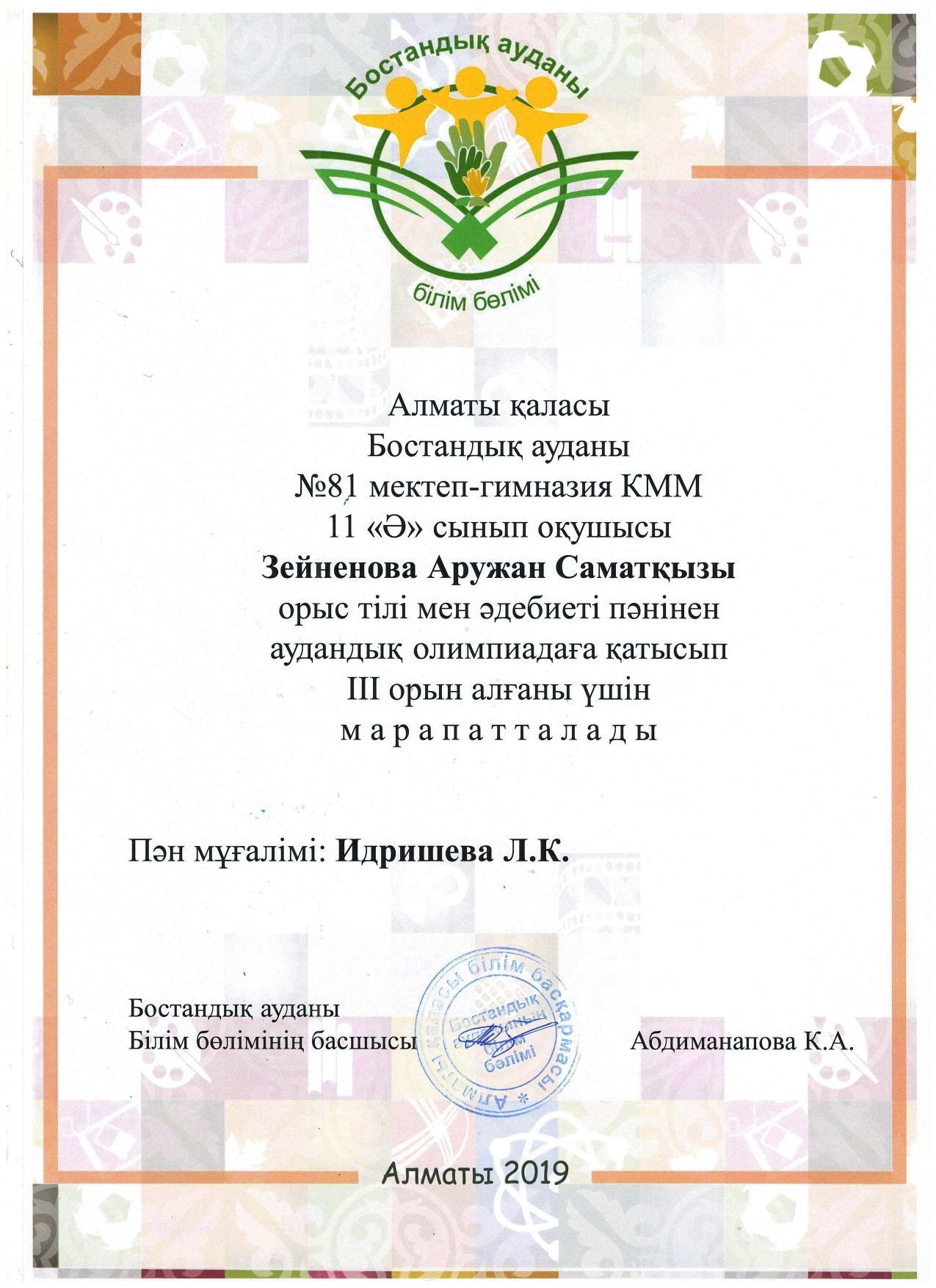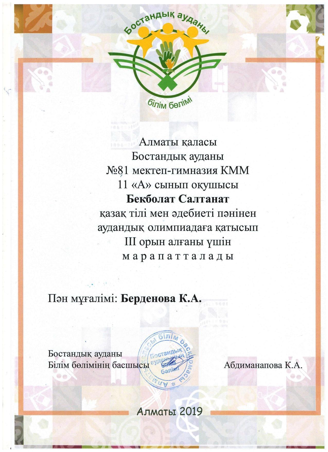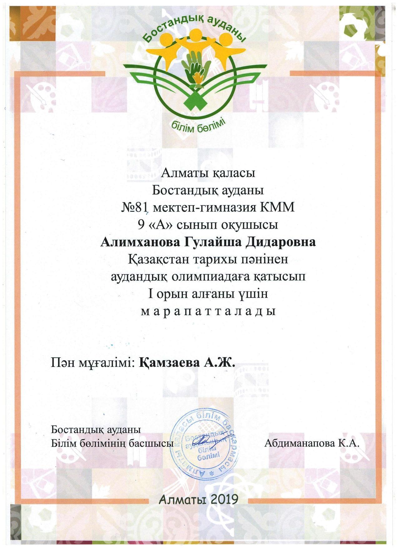 Алматы қаласы Білім басқармасының