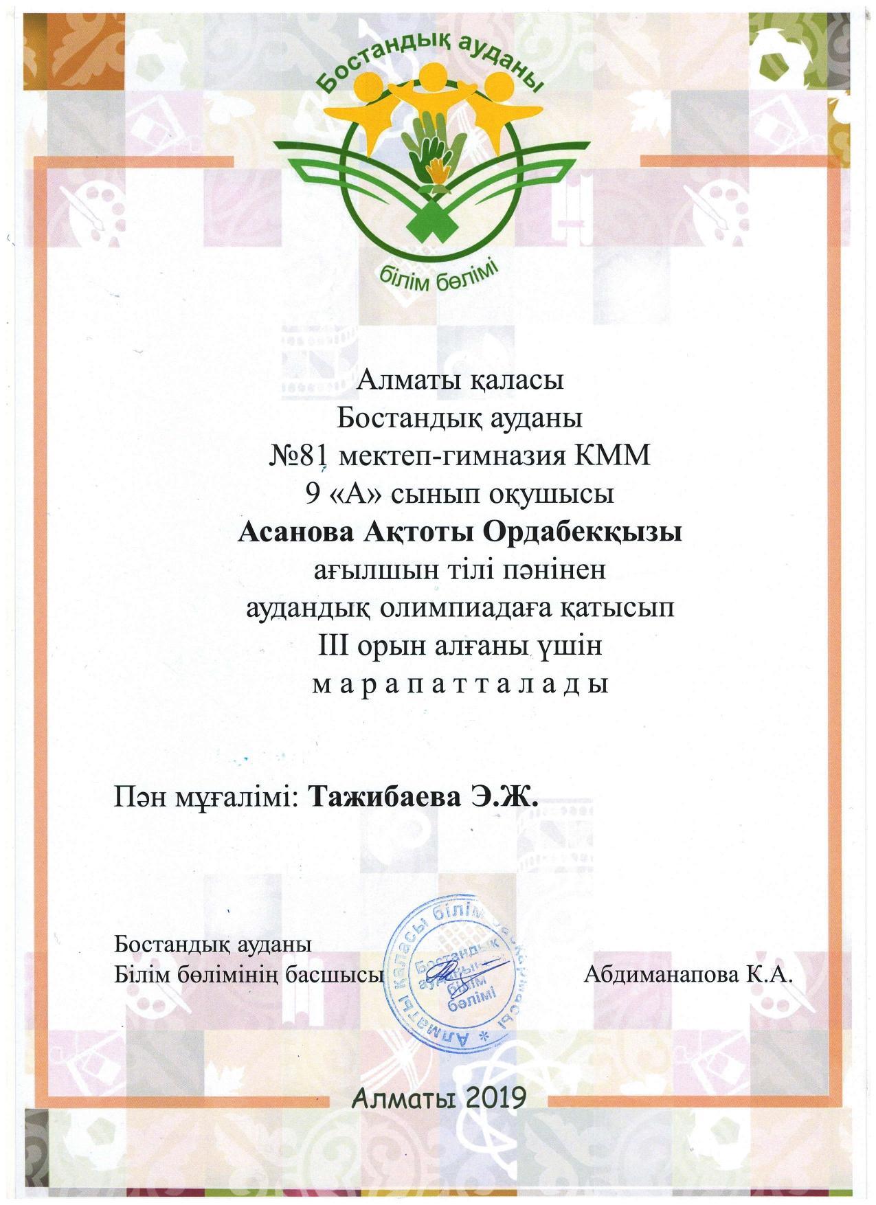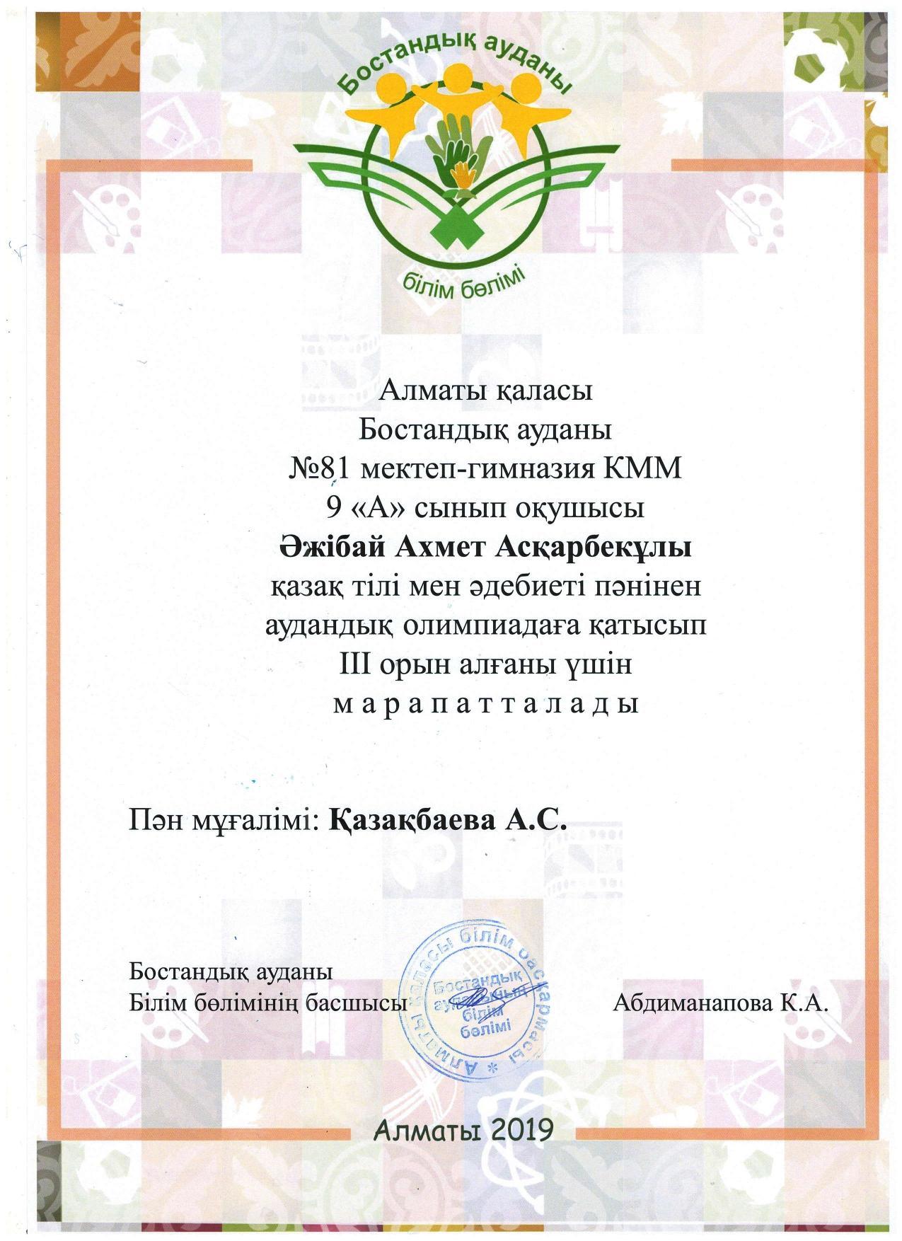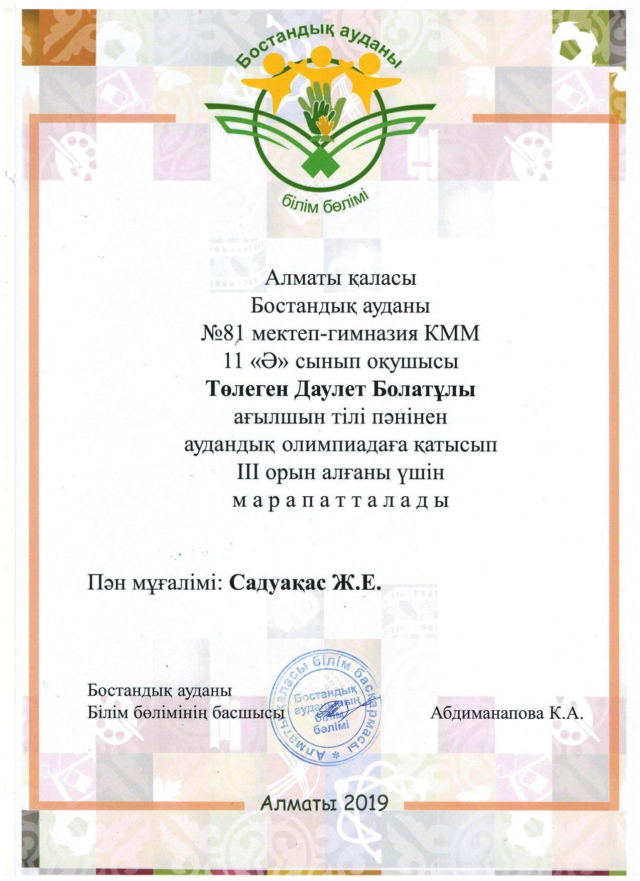 Аудандық олимпиаданың жеңімпаздары