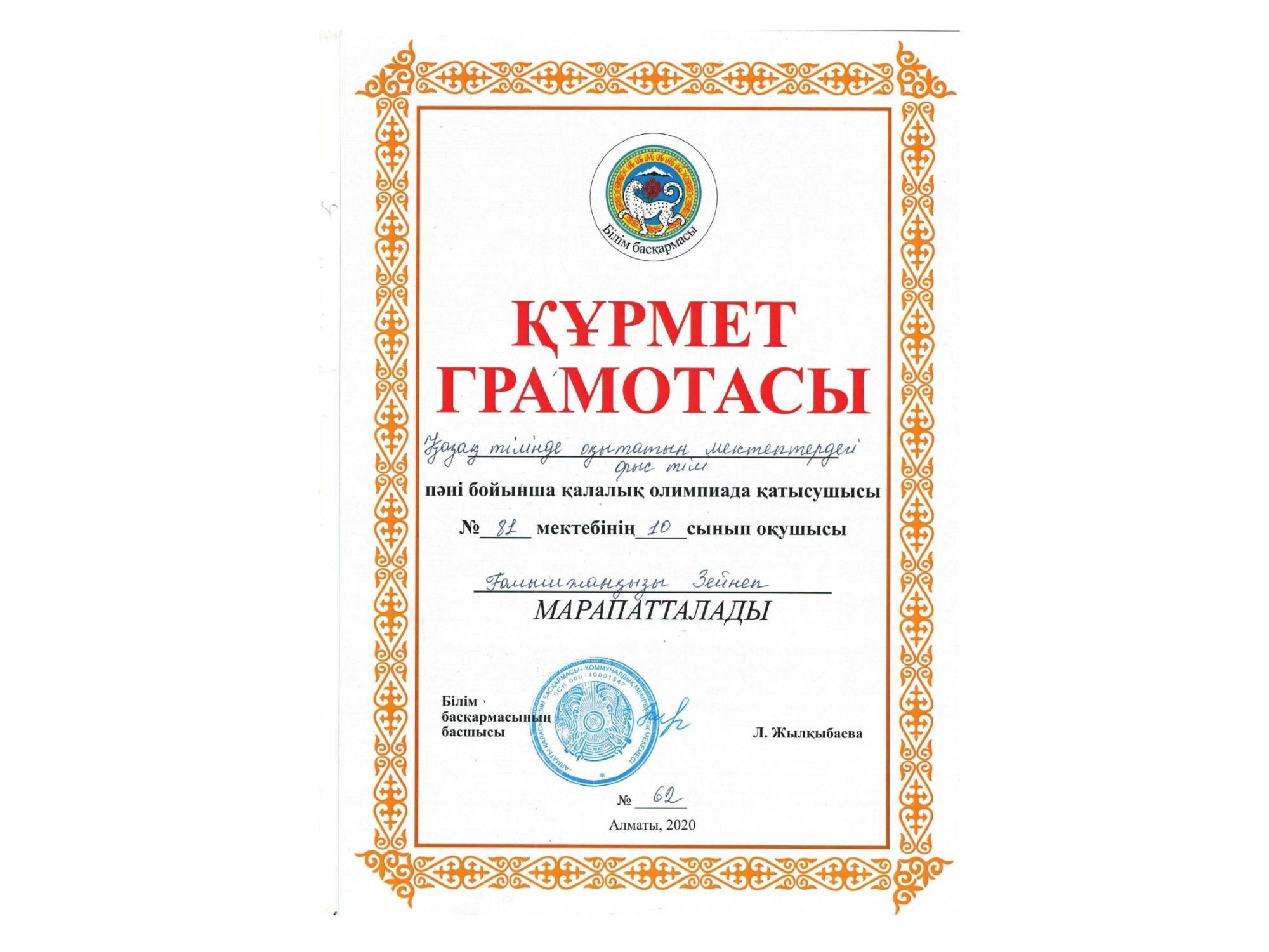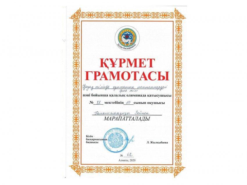 » Қалалық олимпиаданың жеңімпазы
