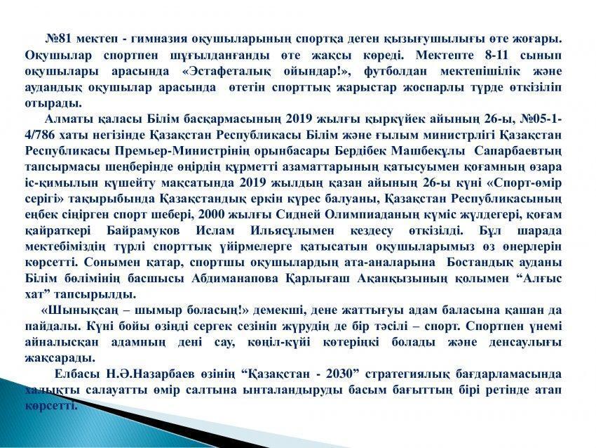 23 қаңтар 2020 0 1 2 3 4 5 8-11 сынып оқушыларының спорттық үйірмелерге қатысуы бойынша жетістіктері Осы беттің QR-коды:QR-код этой страницы: