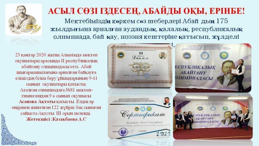 18 мамыр 2020 0 1 2 3 4 5 Абай Құнанбайұлының 175 жылдығына арналған іс-шаралар есебі Осы беттің QR-коды:QR-код этой страницы: