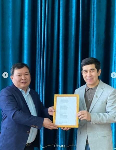 Эстетикалық пәндер бірлестігі онкүндігінің ашылу салтанатында музыка пәнінің мұғалімі Изкенов Самен Жұмағалиұлы мектеп-гимназия директоры Турумбетов Нұрғали Асанұлына мектебімізге арнайы жазған төл туындысы, мектеп Әнұранын тарту етті. Мектеп әнұранының әнін де, сөзін де Самен Жұмағалиұлы жазған. Әрбір сөзі мен шумағы терең ойға толы. Мектеп-гимназияның алғашқы әнұранының ғұмыры ұзақ болғай. Мектебіміздің әнұранын әрбір шәкіртіміз мақтанышпен шырқайды деп ойлаймыз. Мектеп әнұраны- мектебіміздің жарқын келбеті болмақ. Жұмағали Саменұлына шығармашылық шабыт тілей отырып, алғысымызды білдіреміз.