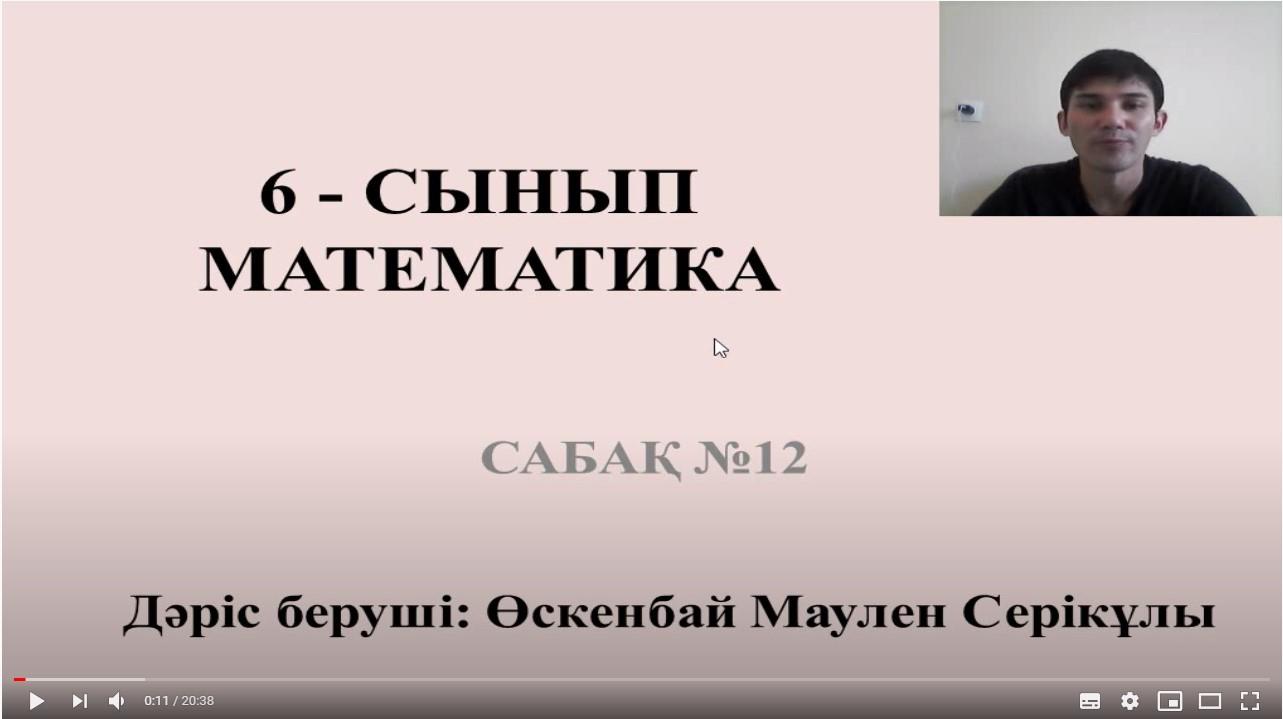 Ютуб сайтындағы тегін сабақ. 6-сынып. Математика пәні. Пән мұғалімі Өсендай Мәулен Серікұлы