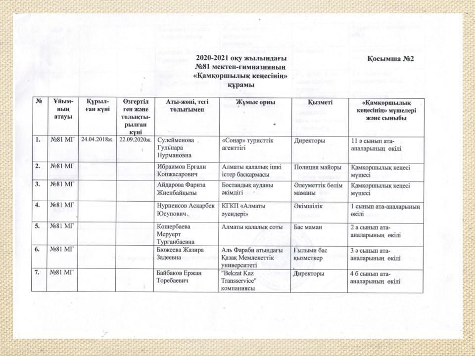 22 қыркүйек 2020 0 1 2 3 4 5 "Қамқоршылық кеңесі" құрамы. 2020-2021 оқу жылы Осы беттің QR-коды:QR-код этой страницы: