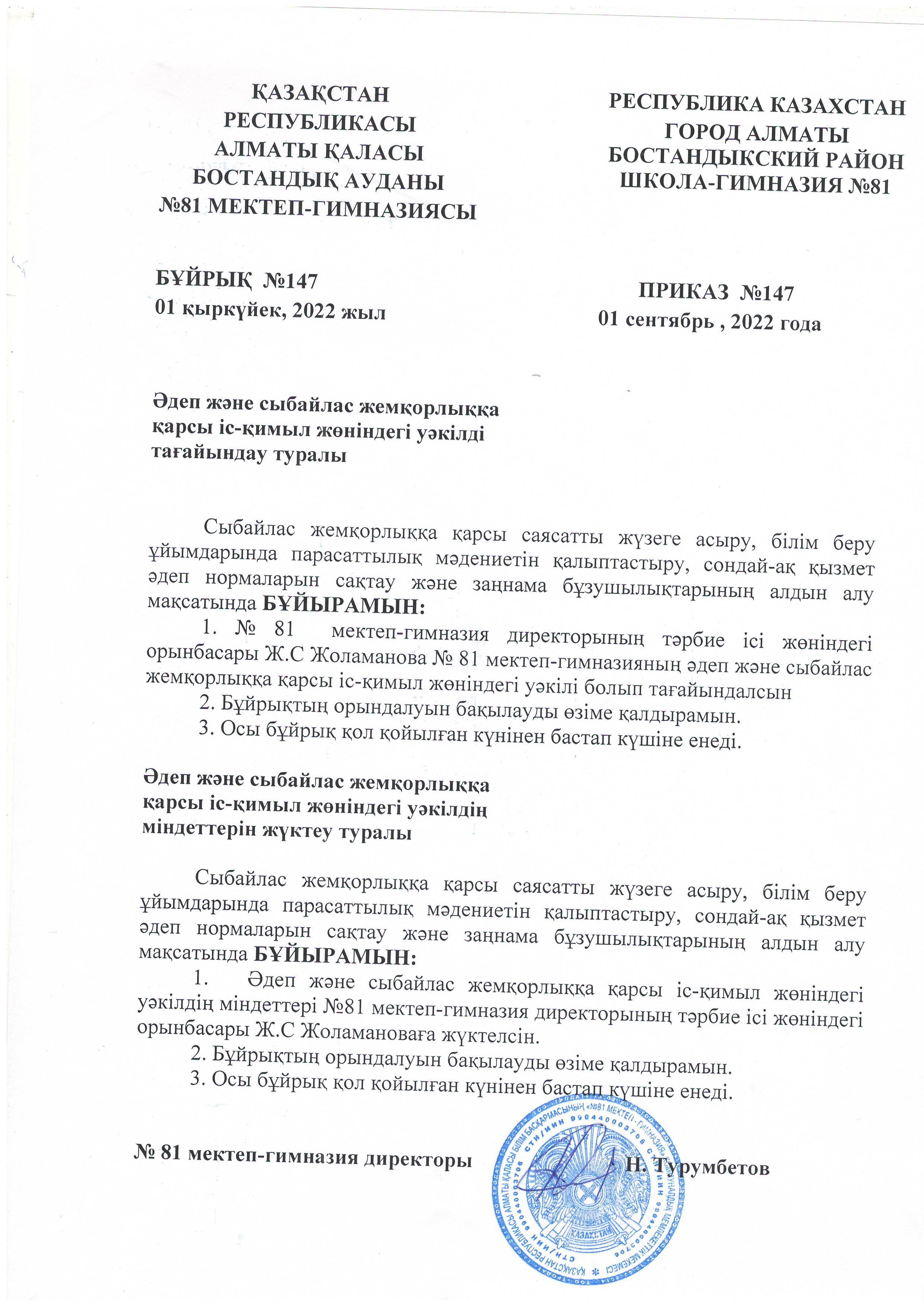 01 қыркүйек 2022 0 1 2 3 4 5 Әдеп және сыбайлас жемқорлыққа қарсы іс-қимыл жөніндегі уәкілді тағайындау туралы. 2022-2023 оқу жылы. Осы беттің QR-коды:QR-код этой страницы: