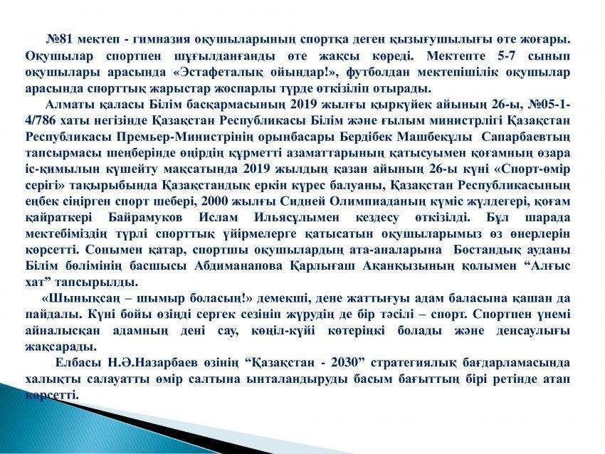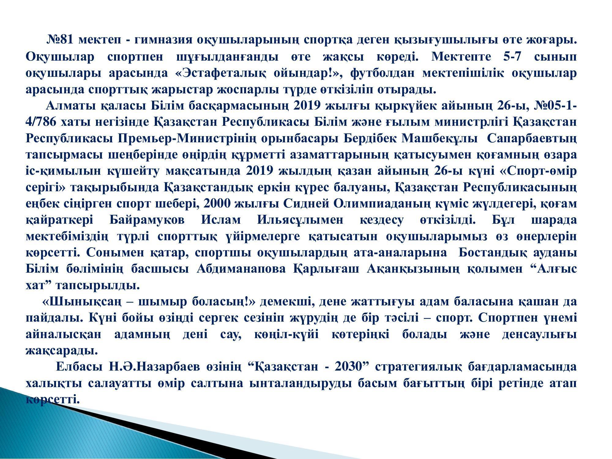 23 қаңтар 2020 0 1 2 3 4 5 5-7 сынып оқушыларының спорттық үйірмелер бойынша жетістіктері Осы беттің QR-коды:QR-код этой страницы: