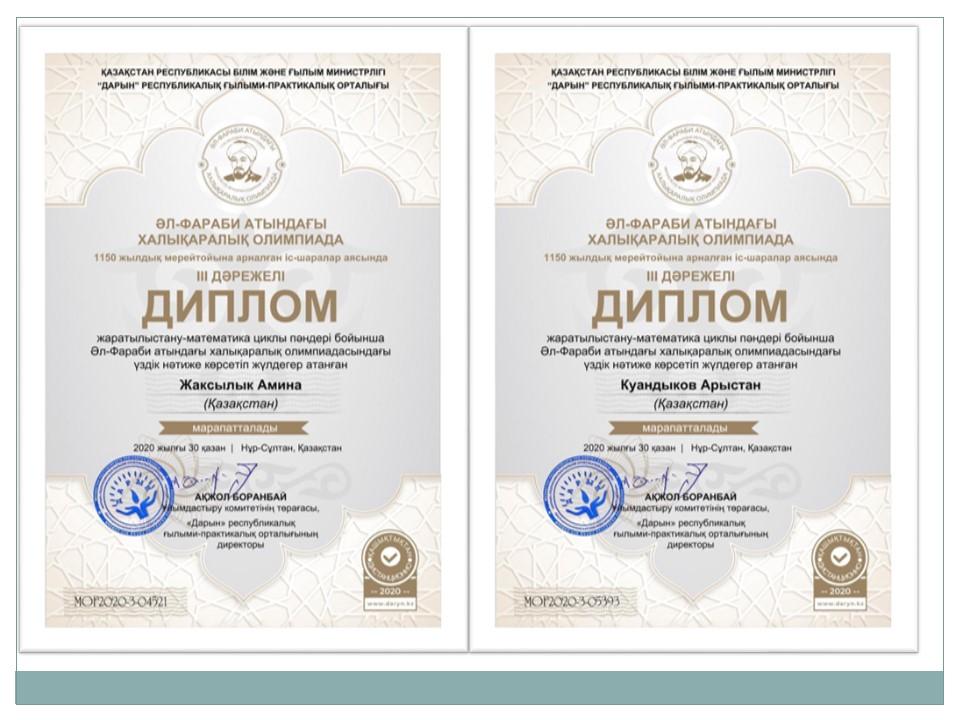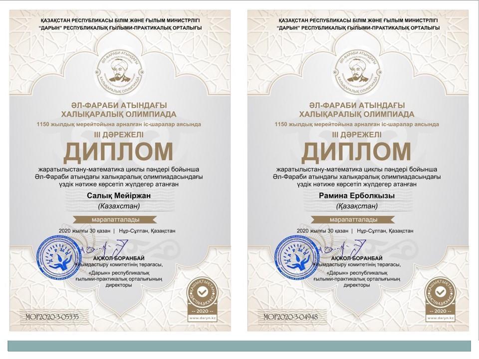 Әл-Фараби атындағы халықаралық олимпиада жеңімпаздары