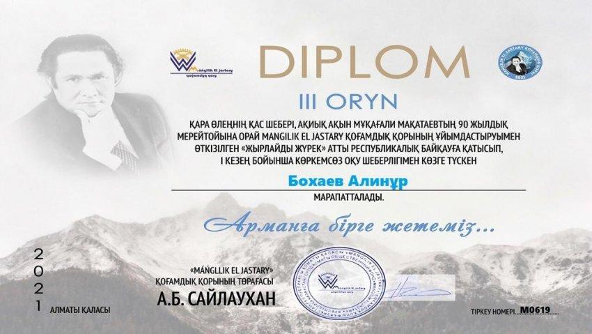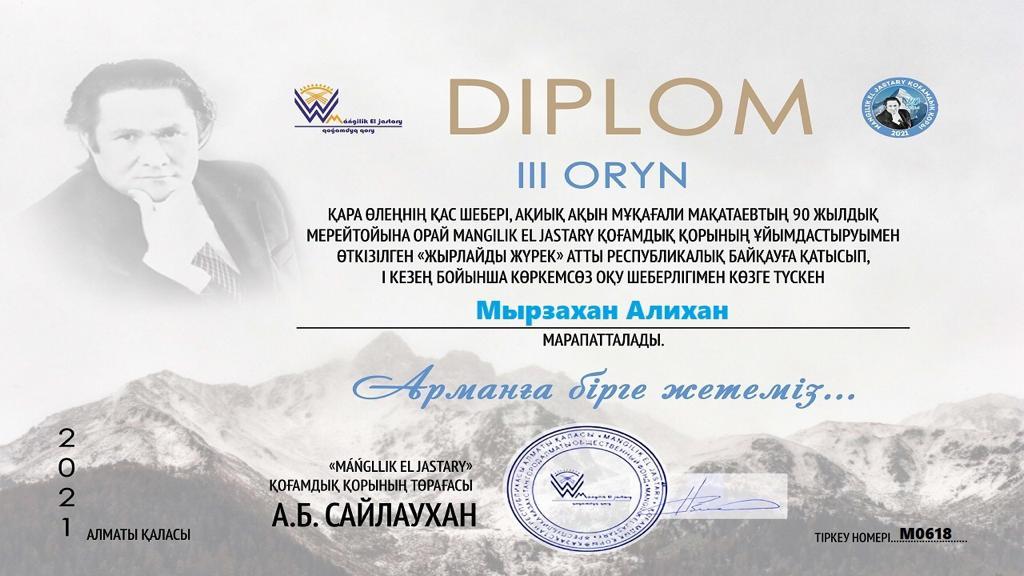 Қара өлеңнің қас шебері, ақиық ақын Мұқағали Мақатевтың 90 жылдық мерейтойына орай "Мәңгілік ел жастары" қоғамдық қорының ұйымдастыруымен өткізілген "Жырлайды жүрек" атты республикалық байқауға қатысып, көркем сөз шеберлігі бойынша көзге түскен, 4 "А" сынып оқушылары жүлделі орындармен марапатталды. Шәкірттеріміздің жүлделі орындары құтты болсын.