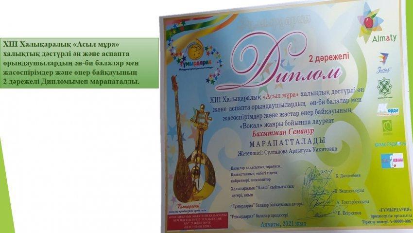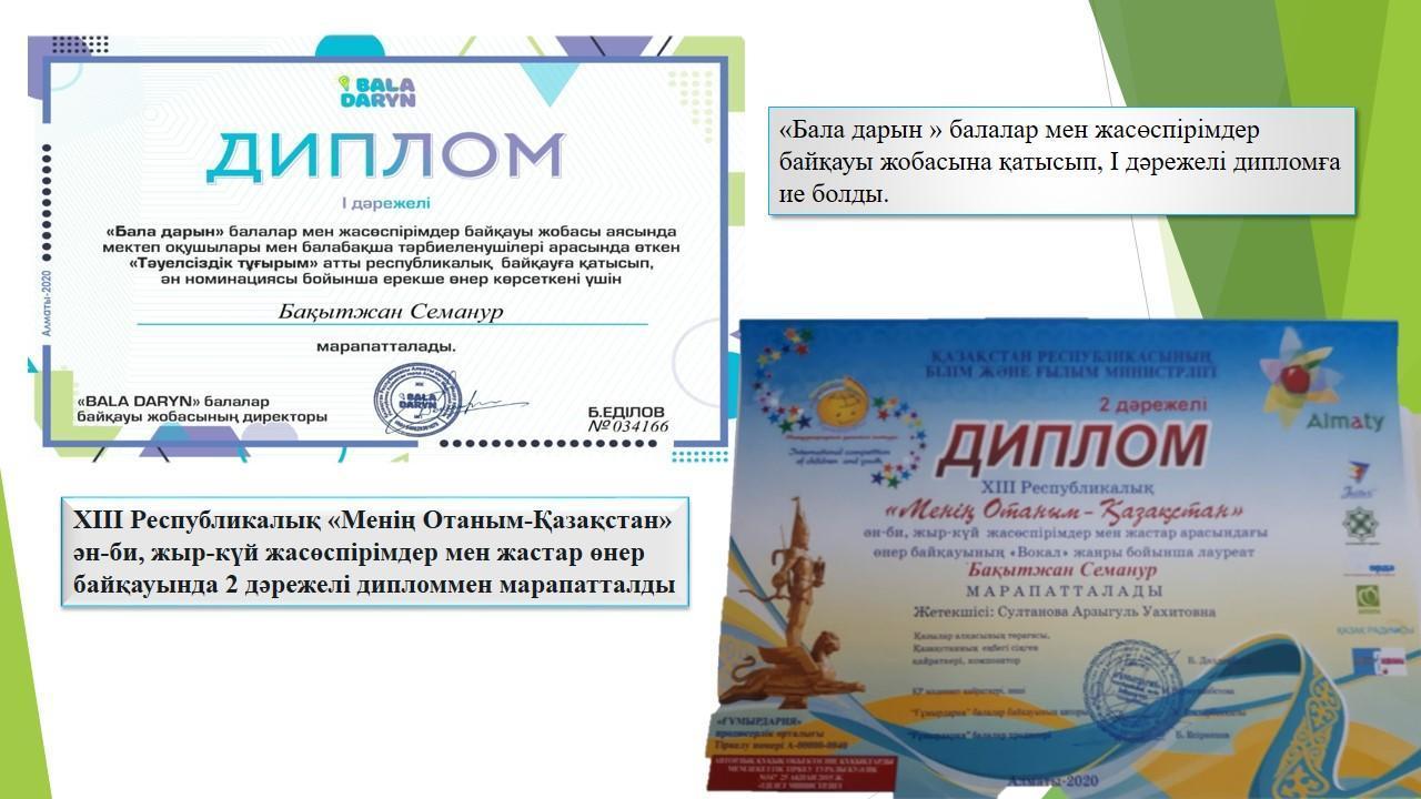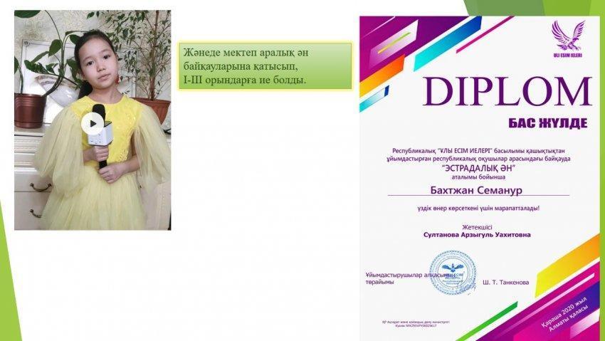 Әрбір бала - бір жұлдыз. 2 "Ә" сынып оқушысы Бахтжан Семанұрдың жетістіктері