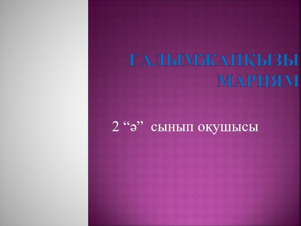 2 "Ә" сынып оқушысы Ғалымданқызы Мариям. Сынып жетекшісі: Калиева А А.