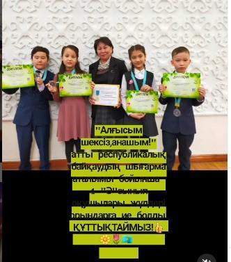 8 наурыз - Халықаралық әйелдер күніне байланысты Республикалық "Жас дарын" дарынды балалар орталығы ұйымдастырған "Алғысым шексіз, анашым!" атты республикалық байқаудың "Шығарма" аталымы бойынша мектебіміздің 4 "Ә"ынып оқушылары: