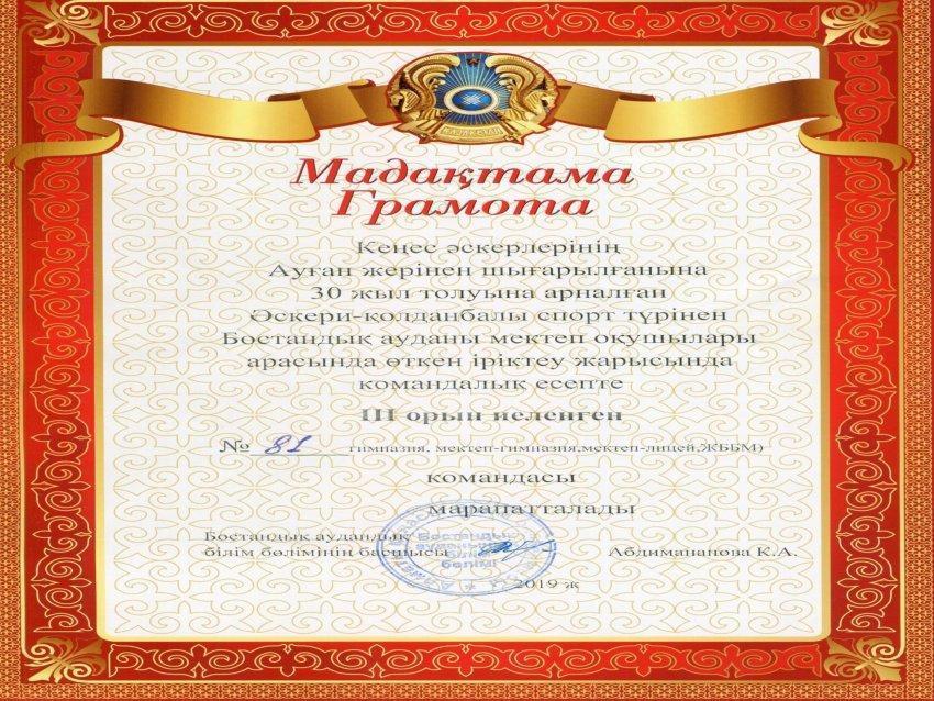 КГУ «Школа-гимназия №81» Управления образования города Алматы