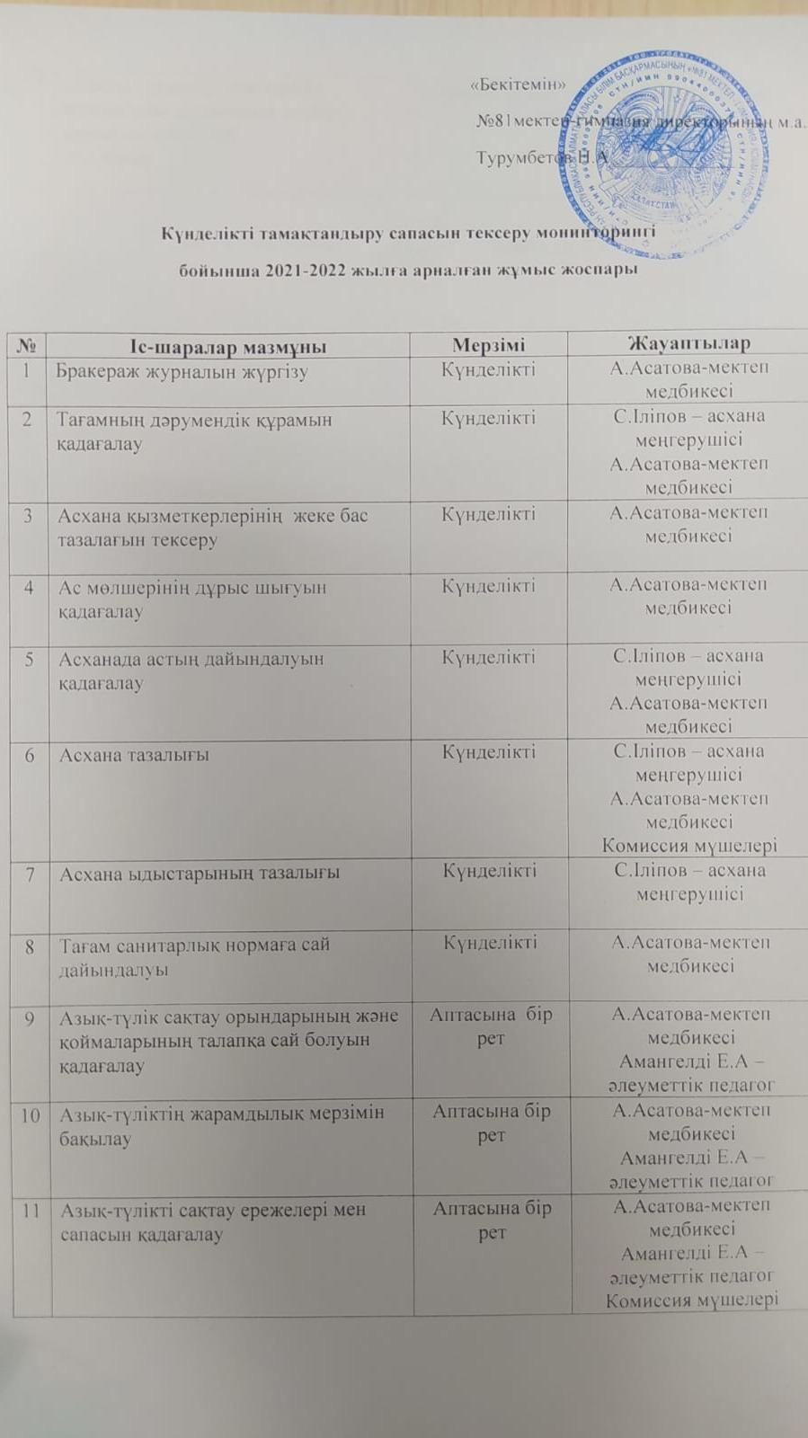 31 тамыз 2021 0 1 2 3 4 5 Тамақтандырудың сапасының мониторингі бойынша жұмыс жоспары.2021-2022 оқу жылы Осы беттің QR-коды:QR-код этой страницы: