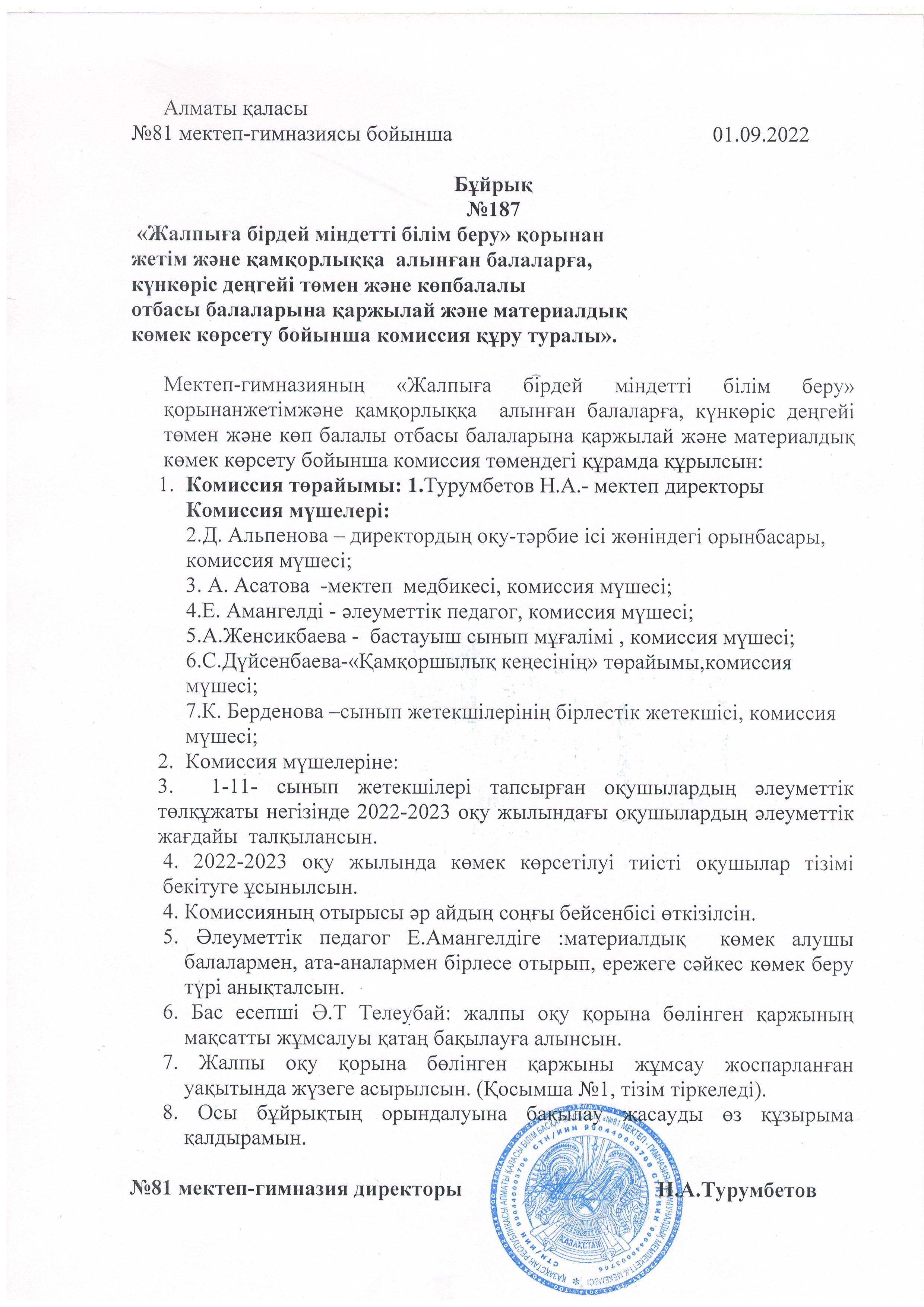 31 тамыз 2022 0 1 2 3 4 5 "Жалпыға бірдей міндетті білім беру" қорынан көмек көрсету бойынша комиссия құру туралы Осы беттің QR-коды:QR-код этой страницы: