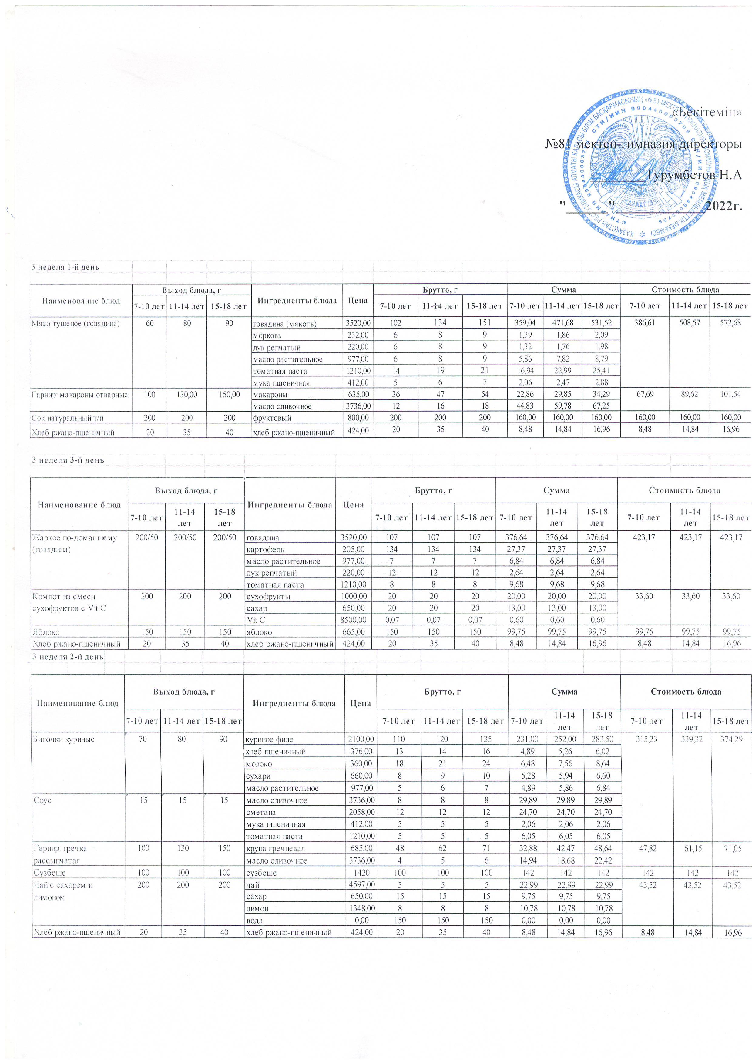 3 апта "Ас мәзірі" 2021-2022 оқу жылы