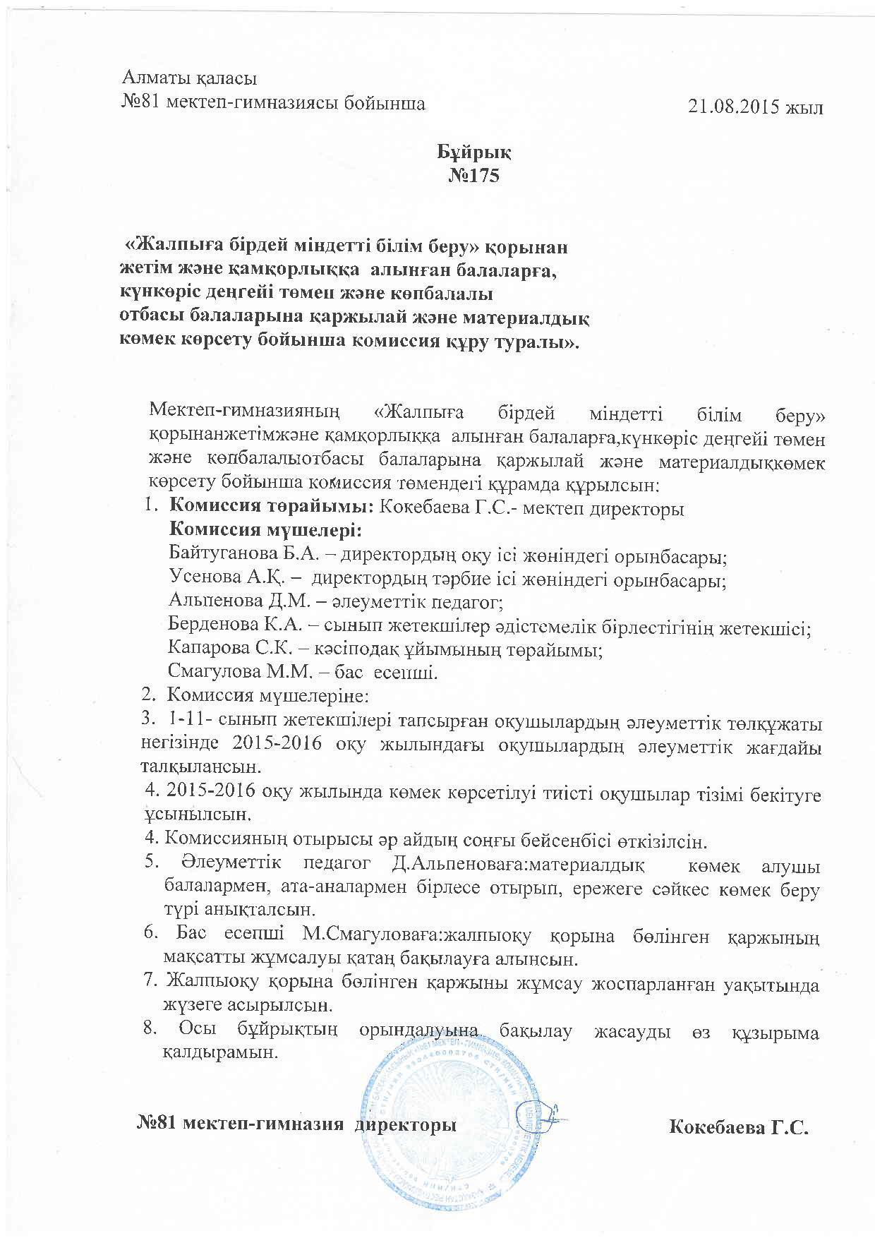 КГУ «Школа-гимназия №81» Управления образования города Алматы